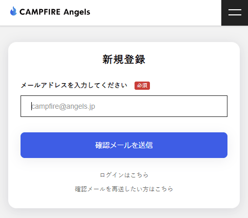 いろいろ入力した後に「メールが届かない」だとやり直しになって大変なので、入力間違いや迷惑メール設定等でCAMPFIRE Angelsからのメールが届かないということが無いように最初に確認をします。